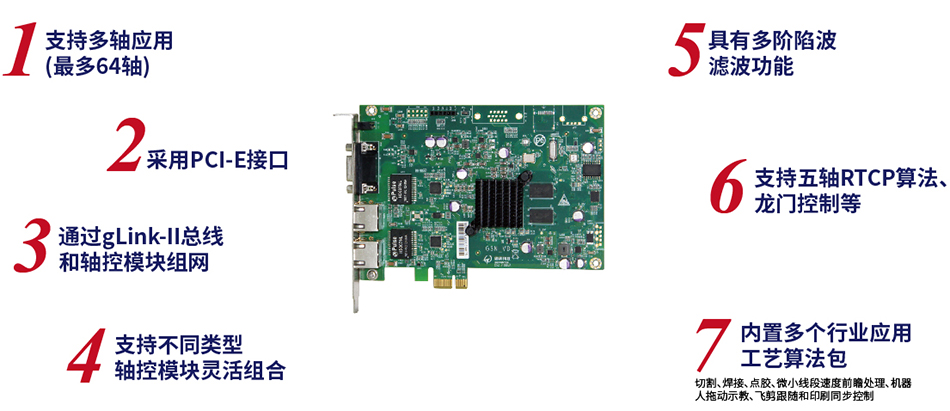 GSN系列高性能多轴网络运动控制器可用于五轴数控机床、6轴机器人、微电子封装设备、高速高精度激光设备、3C行业加工与检测设备、非标自动化装备(检测机、组装机、点胶机、插件机)、特殊工艺设备、纺织机械、包装印刷、流水线工作站等。